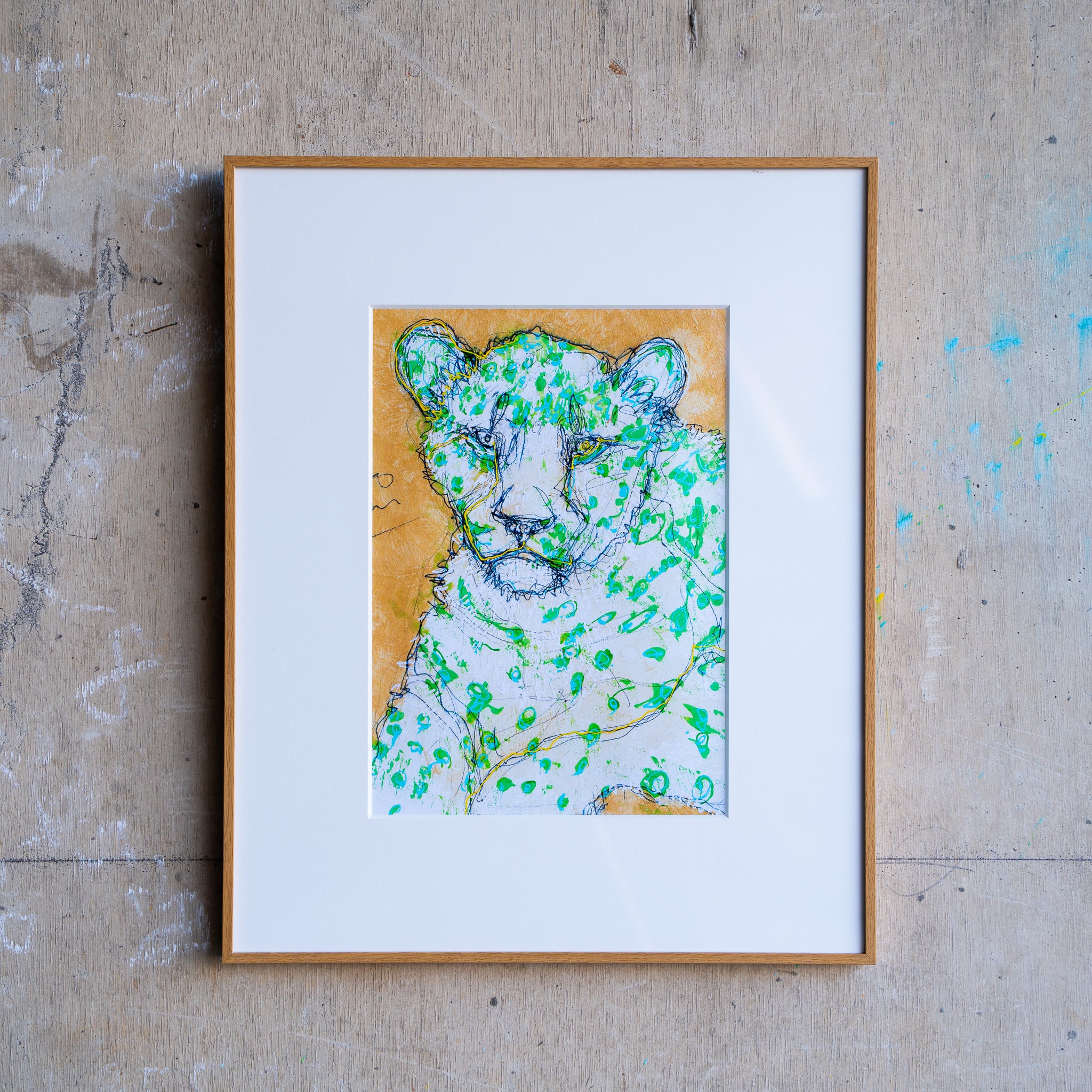 A4額付きポスター「26622 宿題、もうやった? 豹」入り