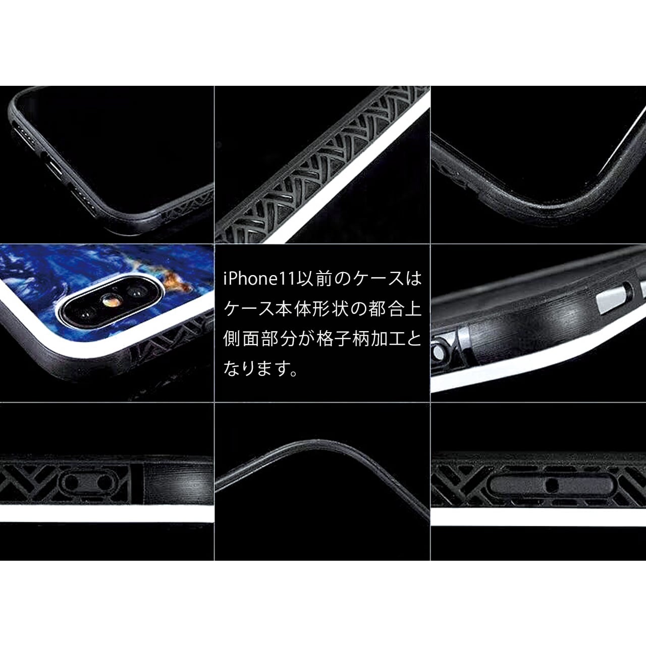 ※iPhone12シリーズ以降のケースについては、ケース本体形状の都合上、側面分の格子柄の加工がない仕様となります。